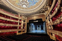 La salle de spectacle, rouge et or, est couronnée par un lustre monumental de sept tonnes et un plafond peint par Marc Chagall, ajouté au XXᵉ siècle. Ce contraste entre héritage classique et modernité artistique illustre parfaitement la vitalité de ce lieu.